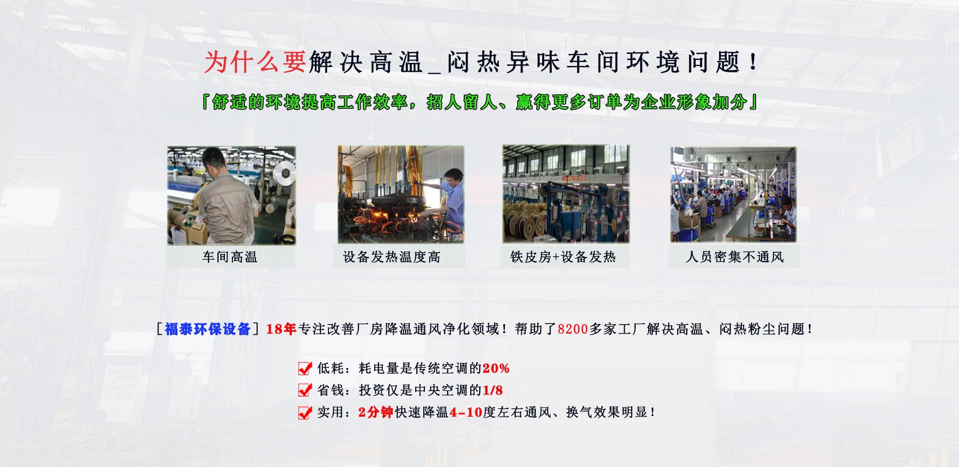 18年只做一件事,解決改善廠(chǎng)房降溫通風(fēng)凈化領(lǐng)域!幫助了8200多家工廠(chǎng)解決高溫、悶熱問(wèn)題!
